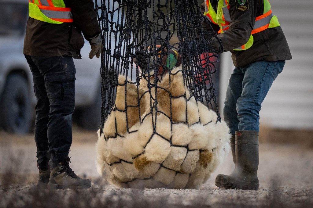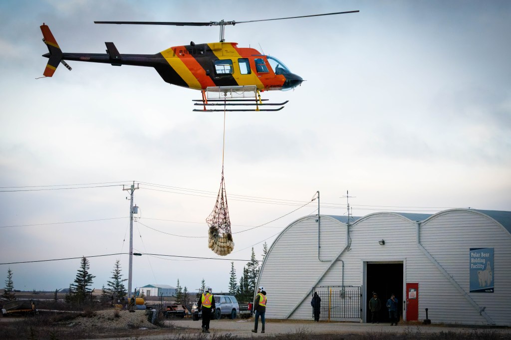 They are blind folded and airlifted to the Hudson Bay coast.